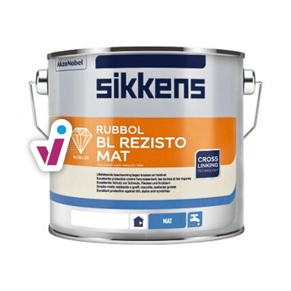 Rubbol BL Rezisto Mat est une peinture de finition intérieure mate pour boiserie, du PVC dur, du béton, du plâtre, prétraités avec une peinture de fond diluable à l'eau. Egalement applicable sur des anciennes couches de peinture synthétiques à base d’alkyde et sur des anciennes couches diluables à l’eau poncées et nettoyées. Sur PVC dur et métaux revêtus du primaire approprié. Particulièrement adapté pour l’entretient, rénovation et construction neuf. Convient particulièrement pour les pièces à usage intense ainsi que pour les lieux publics.